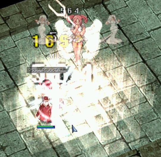うん、思いのほかやられる確率が高いわw 4回連続で寝転がるとかありえなーい。 まぁ装備を色々試してみてる段階なのでなんともいえないのですが~ ディバインクロス使ってみたけどねぇ。 あの火力は魅力的だがななし2層だと防御面できつい。 んで試しにGD3層に狩場を変えてみたら 『ありゃ、すごくぬるいぞ・・・』 温いのですけどものすごく安定して狩れるのですのよね。 しかも経験値効率面でななし2層ソロとあんま変わってない・・・? まぁ一回で抱えられる数が違いすぎるのが大きいねぇ。 トレインはしなかったけどテレポ狩りで着地→ME展開だけで十分な数巻き込むんですが・・・w ななし2層だと2回展開が必要なMEが1回で済むのも楽だし、事前の防御(サンクorSW)行動で石使わないのでお財布にも優しいし、暫くはGD3層で上げるかな~ 検証するのにちょっと死にすぎたw さて恒例の臨時メンテでサーバーが閉まったので今のうちに買出しでるかな。