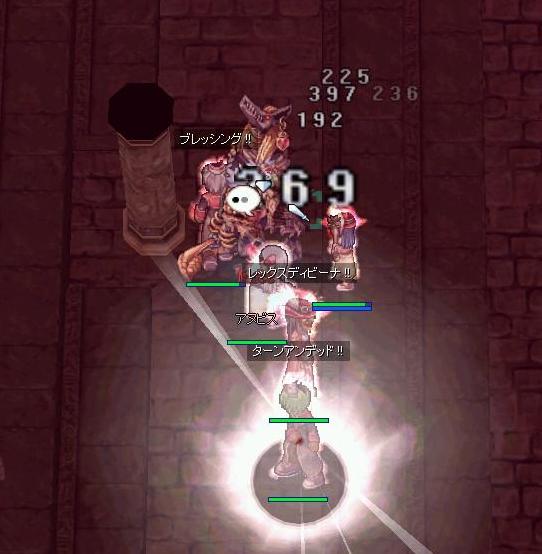 まぁセージで生態研究のクエストがクリアできるかどうか調べるために試しに焼いてみただけですが・・・w うーん、タタチョは問題なく焼けるけど、コルヌスがMDEF高い&属性相性の関係で狩れないことが判明 やっぱり単独クリアは無理か~ 昨日のG狩りに参加するためにセージから養女アコに装備を移したので、ついでに養女アコでも知恵の王の指輪クエストをやってきました クエストNPCの前でピンギキュラと遭遇してガチンコバトルしたらのされてしまいましたが・・・w やっぱりスタン攻撃が痛いですね~ まぁFLEEも足りてなくてガスガス当たってる時点でダメですがw リトライして養女アコでも知恵の王の指輪ゲットです この後、再びセージに装備を戻して二つの種族クエストも進行~ こちらは無事に終わらせることが出来ました とりあえずセージのクエスト巡礼はこの二つの種族で終了です そろそろアサクロでスリーパー師匠の下に通ってお金を稼がないと財政がぁ~ セージには再びアサクロへの付与のお仕事に戻ってもらいます まぁある程度お金が貯まったらセージも教授目指してレベル上げするかな~ クエスト巡礼のおかげでいい感じにレベル上がってるしね~ ただ付与するだけのつもりで作ったセージもLv89にまでなりましたし、このまま付与だけの人生で終わらせるのも可哀相だw 今回はプリ2・ハイプリ1・アコ1・養子アコ1の80台編成でPD4でした~ 私はLv88の養子アコで出陣です メンバー5名のうち4名が鈍器GX持参です どうみても殴る気まんまんですw 途中一回だけ寝転がりましたが比較的順調に狩れましたね~ まぁアコ系ばっかりですから安定しますわね~w そうそう、所属ギルドのWikiのデータを最新のものに修正~ Lvやらステの情報はそちらに乗っけてますので気になる方はどうぞ まぁ見て誰が得するんだって気もしますがw 所属ギルド『無礼者祭り』Wiki内の個人データページ http:// |