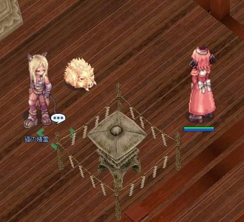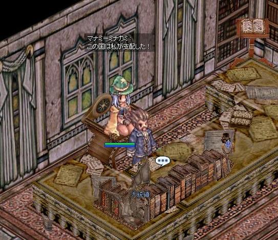 ここのボス『アモンラー』を狩りにきている二人組と遭遇。 そりゃ派手に寝転がっておられました(ぇー 起こしてから私は狩りに戻ったのですけれども、アモンラーの居るところに戻ってみると? また派手に転がっておられました(ぇー 他の方もなんか合流してるしw 話をしてみると、どうもこの場でアモンラー討伐PTを結成したのけれども、PTにプリが居ないとのことです。 助勢を頼まれましたが、アモンラーには痛い目にあっていたので微力ながらお手伝いすることに。 二人組の片方の方もプリにCCして対処するとのことで到着を待t・・・ 待つつもりでしたが、先にはじめようとなって攻撃開始。 PT構成は LK1、クルセ1、教授1、プリ(私)1で攻略開始です。 そしたら別のプリさんが到着する前に終了(ぇ MVPはLKさんでした。 流石に転生職は強い・・・ そういえば臨時PTなんて久々に組んだかも。 しかも現地での勢いでPT組むのは大分前にやったことがあるけど、その場の勢いで組めるのもMMOならではですね。 普段は組むとしたら知人やギルメンが多いからなぁ。 たまにはこんなのもいいかも。 @TUプリばかりだと飽きちゃうので久々にWIZを起動。 狩りでもしようかと思ったけどまだLvが中途半端なのでクエストでLv上げ~ 大統領クエストやって国を乗っ取ってきました(マテ そこっ、mixiの使い回しとか言わないw
